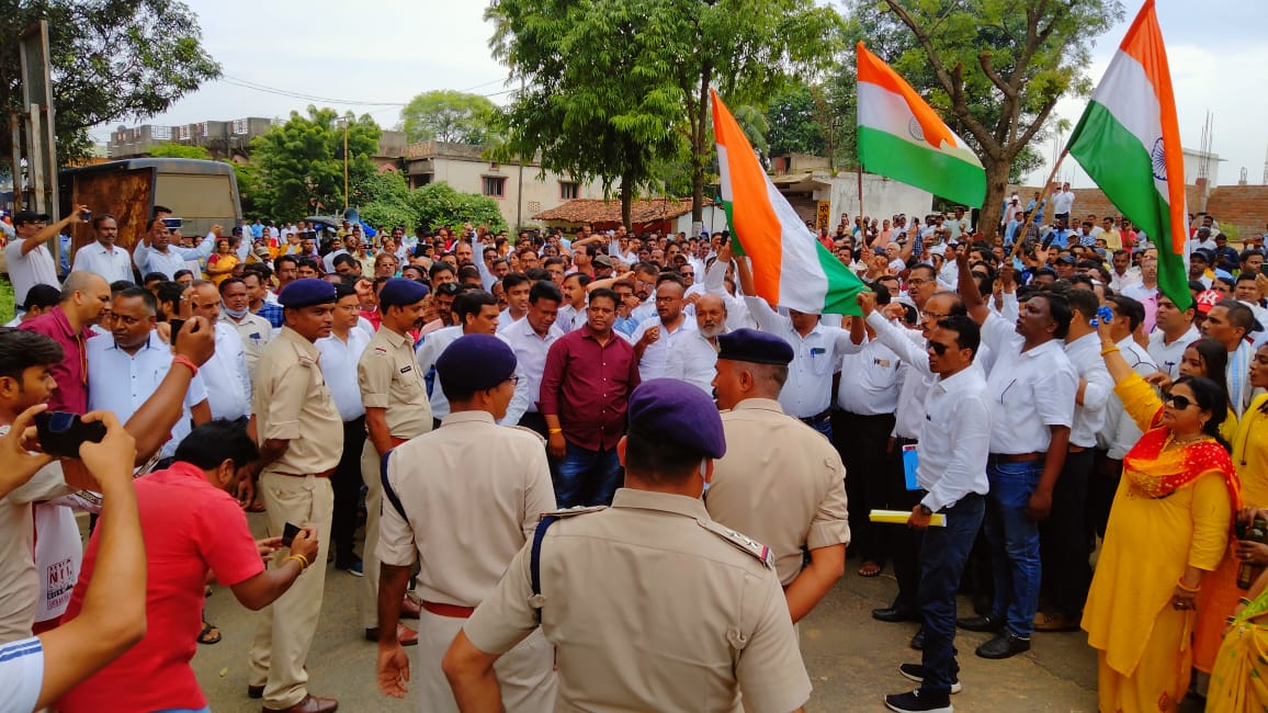 भाजयुमो जिलाध्यक्ष अंचल राजवाड़े के नेतृत्व में जिला रोजगार कार्यालय मनेंद्रगढ़ का किया गया घेराव,कांग्रेस सरकार के खिलाफ की गई जमकर नारेबाज़ी