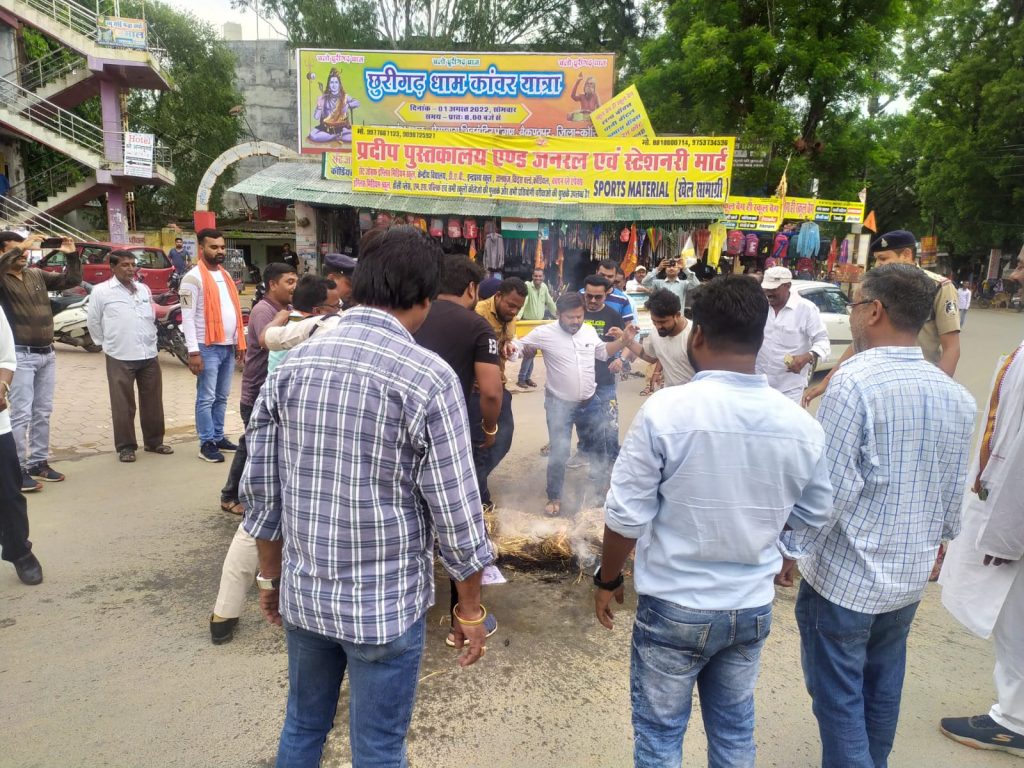 शैलेश शिवहरे के नेतृत्व में भाजपा कार्यकर्ताओं ने राष्ट्रपति पर अभद्र टिप्पणी करने वाले अधीर रंजन चौधरी का पुतला फूंका। कार्यकर्ताओं ने कहा कि वे देश की राष्ट्रपति का किसी तरह का कोई अपमान सहन नहीं करेंगे। इस प्रदर्शन में घड़ी चौक पर भाजपा जिला उपाध्यक्ष शैलेश शिवहरे, भारतीय जनता युवा मोर्चा के जिलाध्यक्ष अंचल किशोर राजवाड़े, वरिष्ठ भाजपा नेता भानु पाल, युवा नेता सुभाष साहू, समाउदिदन सिदिदकी, प्रखर गुप्ता, शारदा गुप्ता आदि मौजूद रहे।