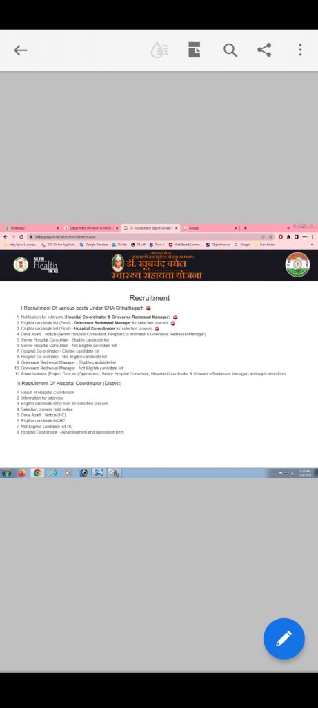 मामले में शिकायत कर्ताओं ने 16 सितंबर 22 को प्रमुख सचिव छत्तीसगढ़ शासन स्वास्थ्य एवं परिवार कल्याण विभाग और संचालक स्वास्थ्य सेवाएं सह मुख्य कार्यपालन अधिकारी राज्य नोडल अधिकारी डॉ खूबचंद बघेल स्वास्थ्य सहायता योजना आयुष्मान भारत से लिखित शिकायत पत्र में शिकायतकर्ता डॉ. हमित कुमार, निकेता पवार उत्तरवार, डॉ राजेश पटेल एवं डॉ प्रिंस जायसवाल ने कहा है कि राज्य में डॉ खूबचंद बघेल स्वास्थ्य सहायता योजना, आयुष्मान भारत प्रधानमंत्री जन आरोग्य योजना एवं मुख्यमंत्री विशेष स्वास्थ्य योजना के सुचारू संचालन हेतु एजेंसी द्वारा दिनॉक 04/02/2021 को हॉस्पिटल कॉर्डिनेटर हेतु ऑनलाइन साक्षात्कार आयोजित किया गया था। साक्षात्कार के बाद भी आवेदकों द्वारा लगातार परिक्षा परिणाम घोषित करने विभाग को आवेदन किया गया ।