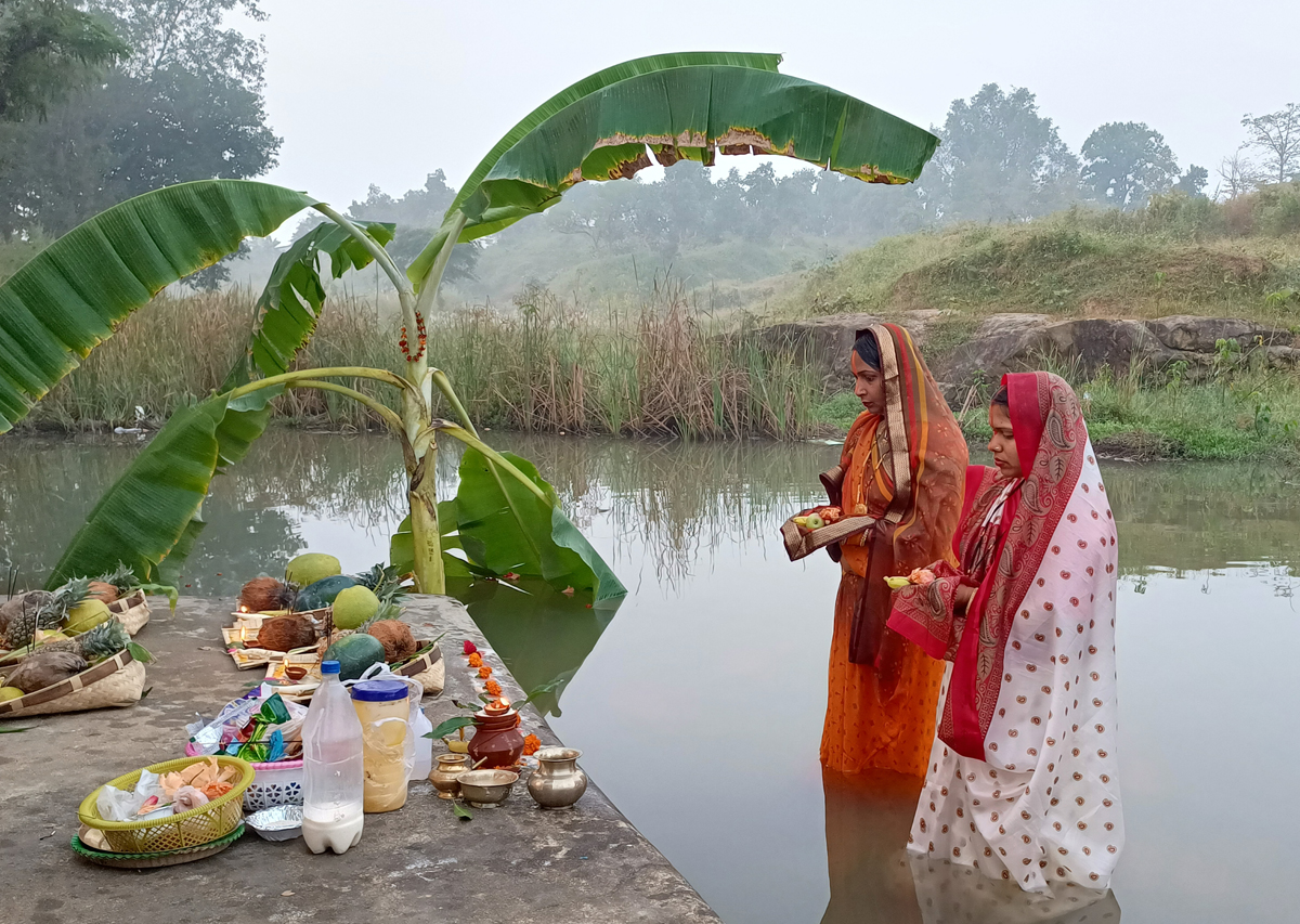 उदयीमान भगवान भास्कर को अरग के साथ वत्रियो ने किया पारण……..