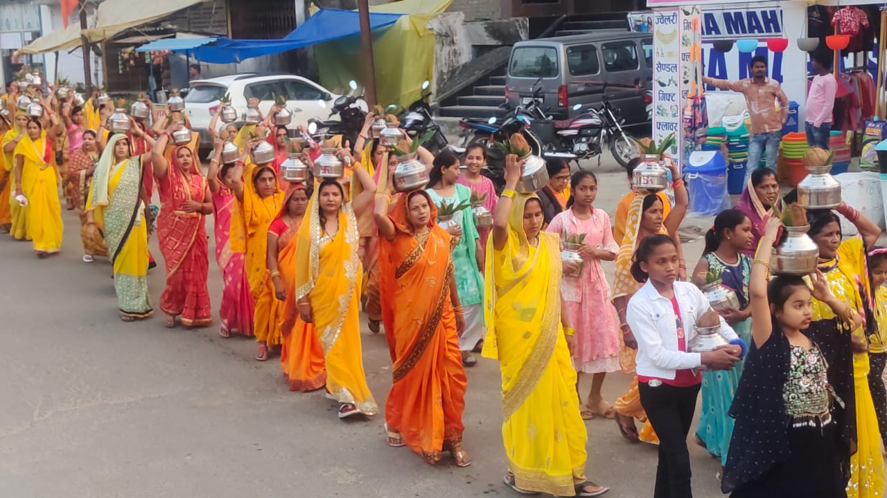 नौ दिवसीय संगीतमय रामकथा का आरम्भ कलश यात्रा के साथ……..