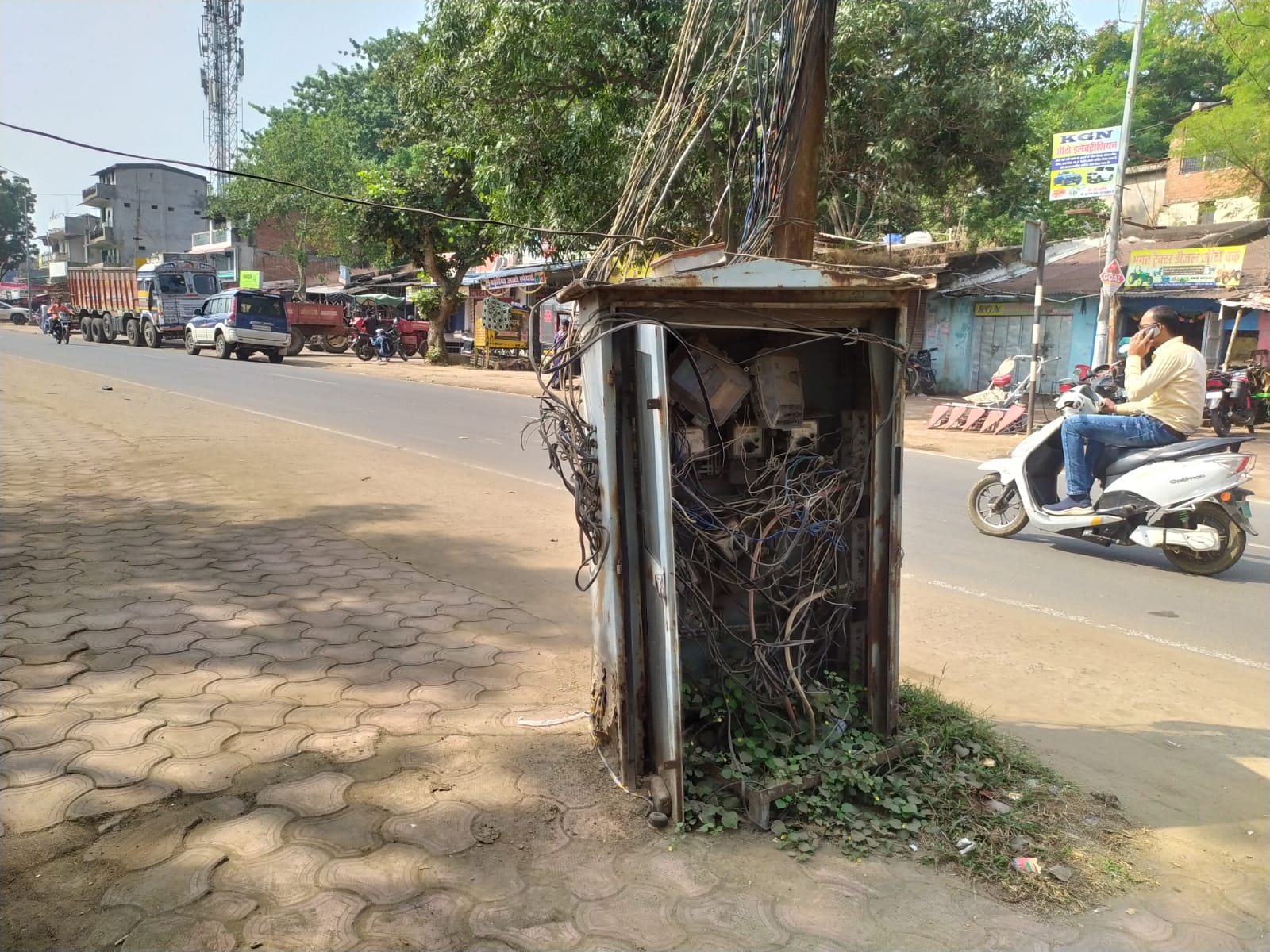 बैकुन्ठपुर शहर में सड़क पर बिजली के तारो का जंजाल, हादसे की आशंका……..