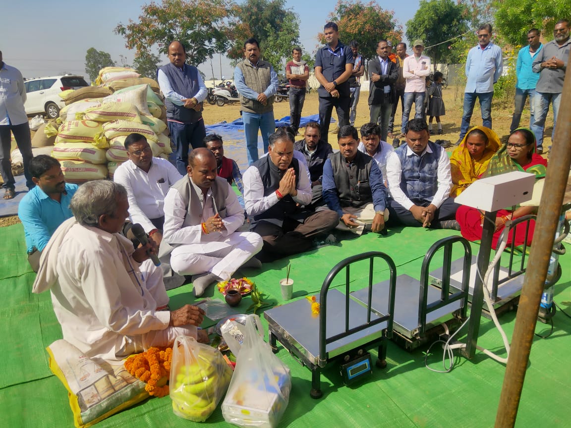 अपने हाथों से धान तौलकर विधायक एवं कलेक्टर ने धान खरीदी कार्य का किया शुभारंभ…..