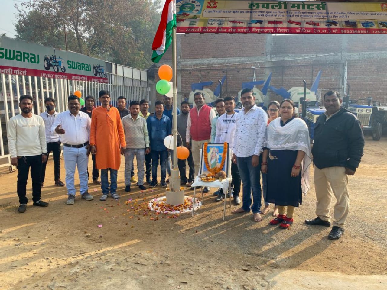 लवली मोटर्स स्वराज ट्रैक्टर शोरूम में लहराया तिरंगा……..