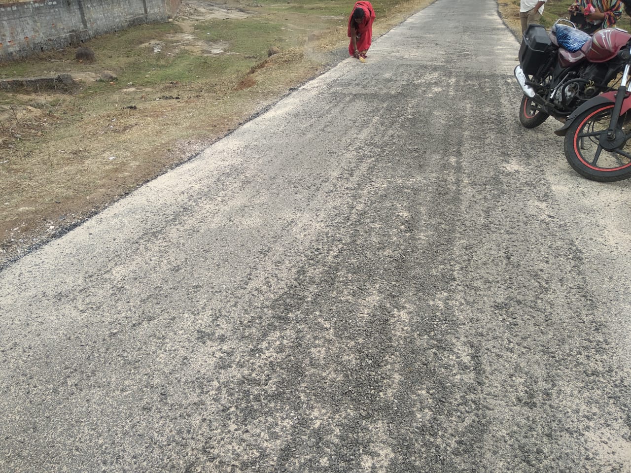 ठेकेदार द्वारा घटिया सड़क बनाए जाने पर भारी भ्रष्टाचार की आशंका……