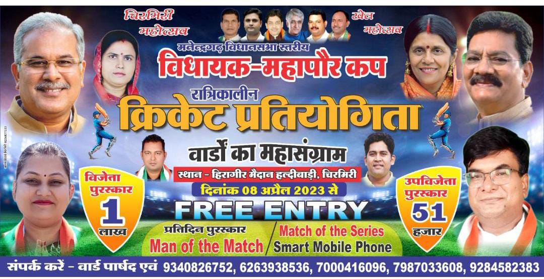 निगम के 40 वार्डो के खिलाड़ियों का महासंग्राम का आगाज आज .विधायक/महापौर कप क्रिकेट प्रतियोगिता के तत्वधान में दिखेगा युवा खिलाड़ियों का जौहर.