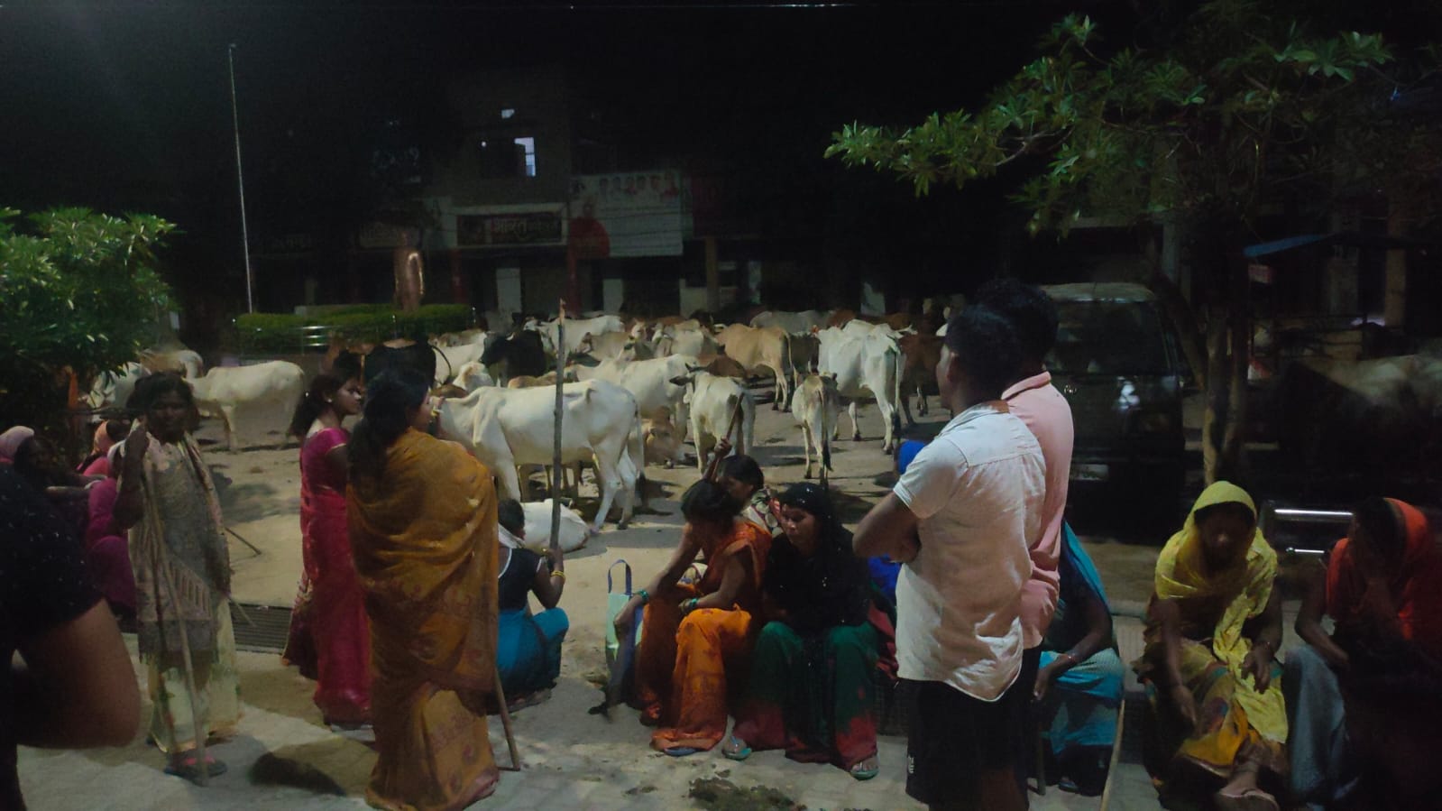 ग्रामीणों महिलाओ ने नगर पालिका परिसर में पहुॅचाया आवारा पशुओ का झुंड……