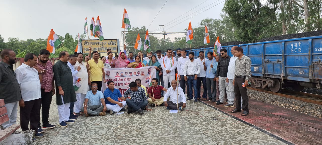 बैकुन्ठपुर रोड रेलवे स्टेशन पर कांग्रेसियो ने किया प्रर्दशन…..