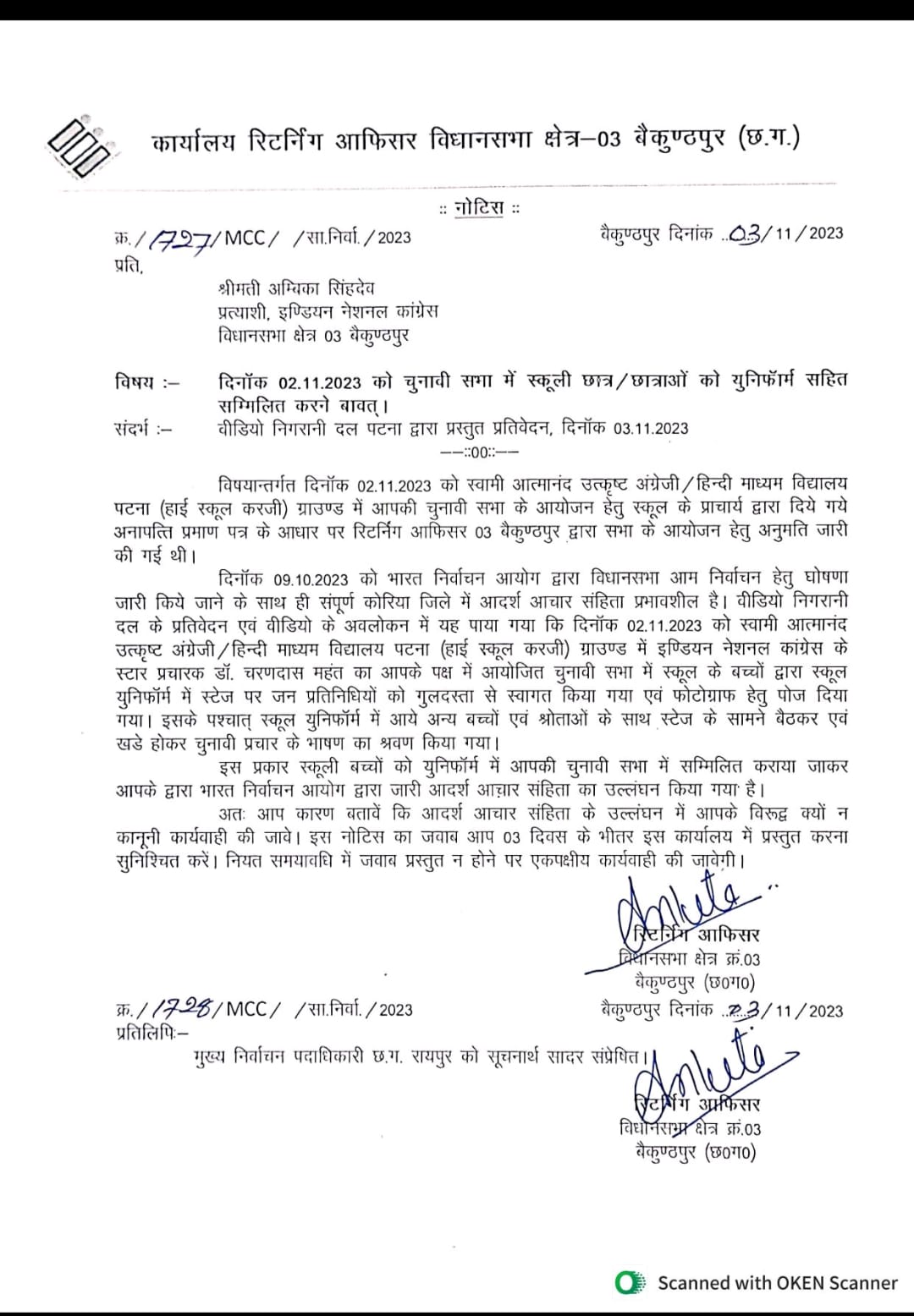 कांग्रेस की सभा में स्कूली छात्र….जिला निर्वाचन अधिकारी ने कांग्रेस प्रत्यासी से मंगा जवाब……. प्राचार्य को निलंबित करने दिया आदेश
