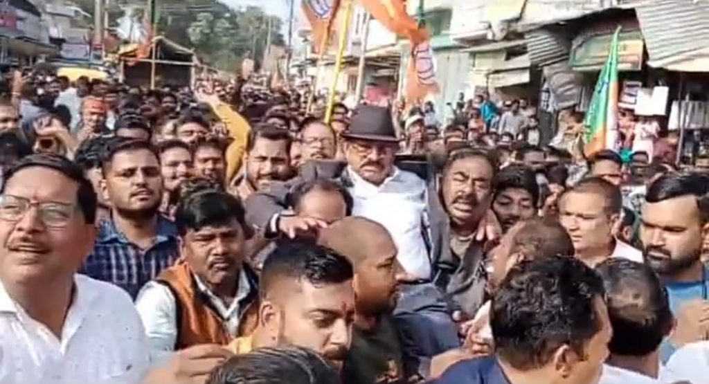 एक ही दिन मनी होली और दिवाली जिले भर में भाजपा समर्थकों ने मनाया । भाजपा के बेहतर प्रदर्शन से उत्साहित भाजपाइयों ने जिले भर में जीत का जश्न मनाया। रविवार को होली और दिवाली साथ-साथ मनी। कहीं पटाखे फूटे, तो कहीं अबीर गुलाल उड़े। इस दौरान नरेंद्र मोदी से लेकर भैयालाल राजवाडे तक की जय जयकार होती रही। जैसे जैसे चुनाव परिणाम आते गए वैसे वैसे भाजपा कार्यकर्ता एवं समर्थक सड़कों पर उतरते गए। चुनाव परिणाम की संभावनाओं को देखते हुए भाजपाइयों ने इस जश्न की तैयारी पहले से कर रखी था, जैसे जैसे चरणबद्ध नतीजे आते गए कार्यकर्ताओं की उत्साह दोगुना चौगुना होता गया। विधानसभा चुनाव में इस तरह का जश्न जिला मुख्यालय में पहली बार देखा गया। चुनाव में भाजपाइयों ने जमकर आतिशबाजी किया और मिठाई बांटकर खुशी का इजहार किया।