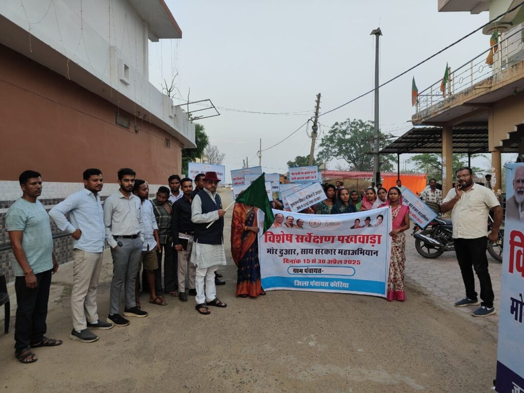 इस क्रम में विगत दिनों मुख्यमंत्री विष्णुदेव साय ने बस्तर जिले के घाटपदमपुर ग्राम से राज्य स्तरीय अभियान का शुभारंभ किया था। वहीं 17 अप्रैल को विधायक एवं सांसद, 18 अप्रैल को जिला पंचायत अध्यक्ष एवं सदस्य तथा 19 अप्रैल को जनपद अध्यक्ष एवं सदस्य द्वारा सर्वेक्षण किया जाएगा।