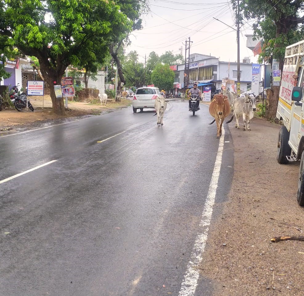 सड़क पर मवेशी, बेखबर हैं जिम्मेदार……सालभर पहले तत्कालीन कलेक्टर ने ग्रामिण क्षेत्रो में ग्राम पंचायत व शहरी क्षेत्रो में नगर पालिका को जिम्मेदारी दिया था। कुछ दिन चला अभियान अब ठंडे बस्ते में।