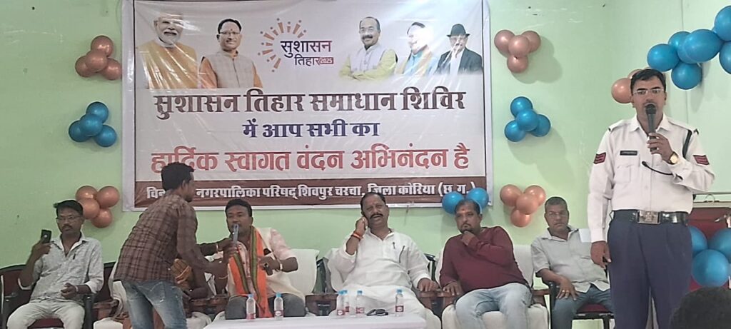 कलेक्टर चंदन संजय त्रिपाठी एवं पुलिस अधीक्षक रवि कुमार कुर्रे के निर्देशानुसार व अतिरिक्त पुलिस अधीक्षक पंकज पटेल एवं उप पुलिस अधीक्षक श्याम मधुकर के मार्गदर्शन में एवं यातायात प्रभारी बीरबल राजवाड़े के नेतृत्व में थाना व यातायात पुलिस द्वारा सड़क सुरक्षा को बढ़ावा देने एवं सड़क दुर्घटनाओं में कमी लाने के साथ व्यापक पैमाने पर आम जनों को यातायात नियमों के प्रति जागरूक करने के लिए सुशासन तिहार के अवसर पर आयोजित समाधान शिविर में यातायात जागरूकता संबंधी प्रदर्शनी लगाये जा रहे हैं।