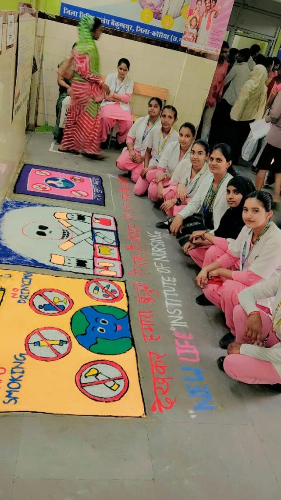 न्यू लाईफ हेल्थ एण्ड एजुकेशन सोसायटी द्वारा संचालित न्यू लाईफ इंस्टीट्यूट ऑफ नर्सिंग, बैकुंठपुर में अध्ययनरत् छात्राओं ने नशा मुक्त भारत अभियान की पांचवी वर्षगांठ के उपलक्ष्य में मुख्य चिकित्सा एवं स्वास्थ्य अधिकारी बैकुण्ठपुर, जिला कोरिया के निर्देशन में जिला अस्पताल, बैकुंठपुर में कार्यक्रम आयोजित किया गया। जिसमें न्यू लाईफ इंस्टीट्यूट ऑफ नर्सिंग बैकुंठपुर में अध्ययनरत् बी.एस.सी. नर्सिंग के छात्राओं द्वारा विविध कार्यक्रम आयोजित किया गया, जिसमें नुक्कड-नाटक एवं रंगोली प्रतियोगिता का आयोजन किया गया।