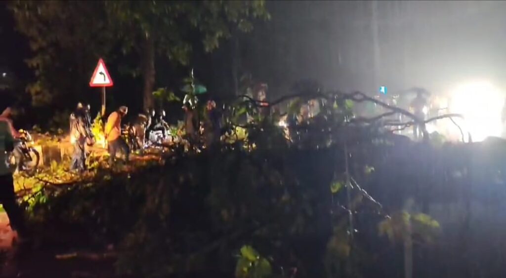 मंगलवार और बुद्धवार की दरमयानी की रात बारिश तेज हवाओं के साथ लगातार हो रहे मूसलधार बारिश हुई। जिस कारण हाइवे पर दो पेड़ गिर जाने की वजह से करीब 08 घंटे इस सड़क पर आवागमन बाधित रहा। मंगलवार को शाम 07 बजे में फिर एक पेड सडक पर गिरने के बाद जैसे ही वन विभाग ने इस पेड को काट कर सडक से किनारे किया उसके बाद फिर से रात 09 बजे के आसपास एक और विशाल पेड भरभराकर सडक कर गिर गया। जब तक पेड़ काटकर सड़क से नहीं हटाया जा सका था। इस दौरान सड़क के दोनों ओर वाहनों की कतार लग गई। हालांकि बुद्धवार को वन विभाग की टिम के द्धारा जमदुआरी घाट पर कुछ संभावित जानलेवा पेडो की छटाई करावाया है।