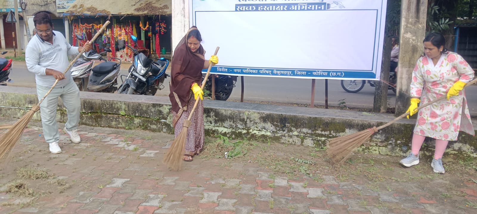 बैकुंठपुर के शहिद वीर नारायण वार्ड में पार्षद के नेतृत्व में स्वच्छता ही सेवा पखवाड़ा अंर्तगत साफ-सफाई