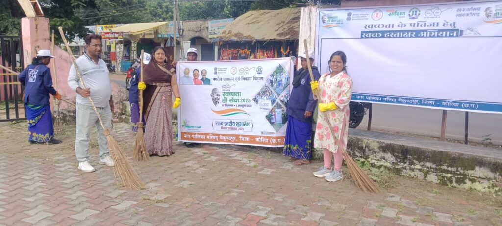 बैकुंठपुर के शहिद वीर नारायण वार्ड में पार्षद के नेतृत्व में स्वच्छता ही सेवा पखवाड़ा अंर्तगत साफ-सफाई