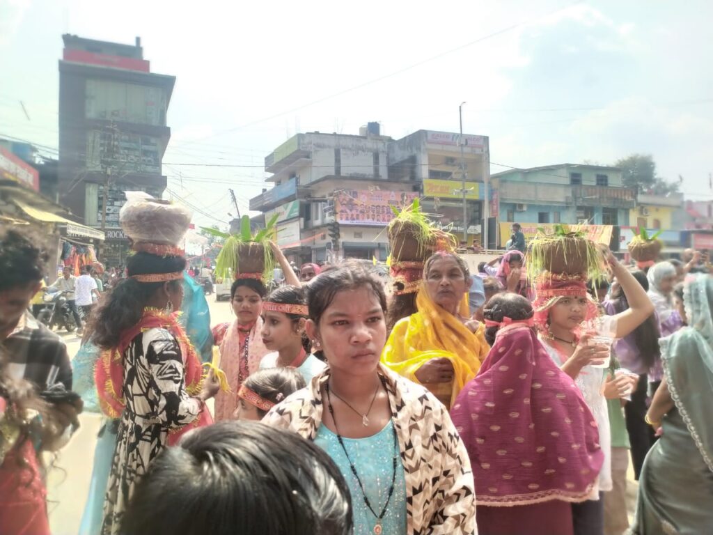 बैकुंठपुर में अष्टमी नवरात्र के अवसर पर भव्य जवारा यात्रा निकाली गई। दिन के कठोर व्रत के बाद मां अंबे के भक्त छोटे-बड़े सांग लेकर नंगे पैर सड़कों पर निकले। धर्म से जुड़े युवाओं की टोली ने जवारा और सांग यात्रा का नेतृत्व किया। नवरात्र के सप्तमी, अष्टमी और नवमी पर क्षेत्र में विभिन्न जवारा यात्राएं निकलीं।