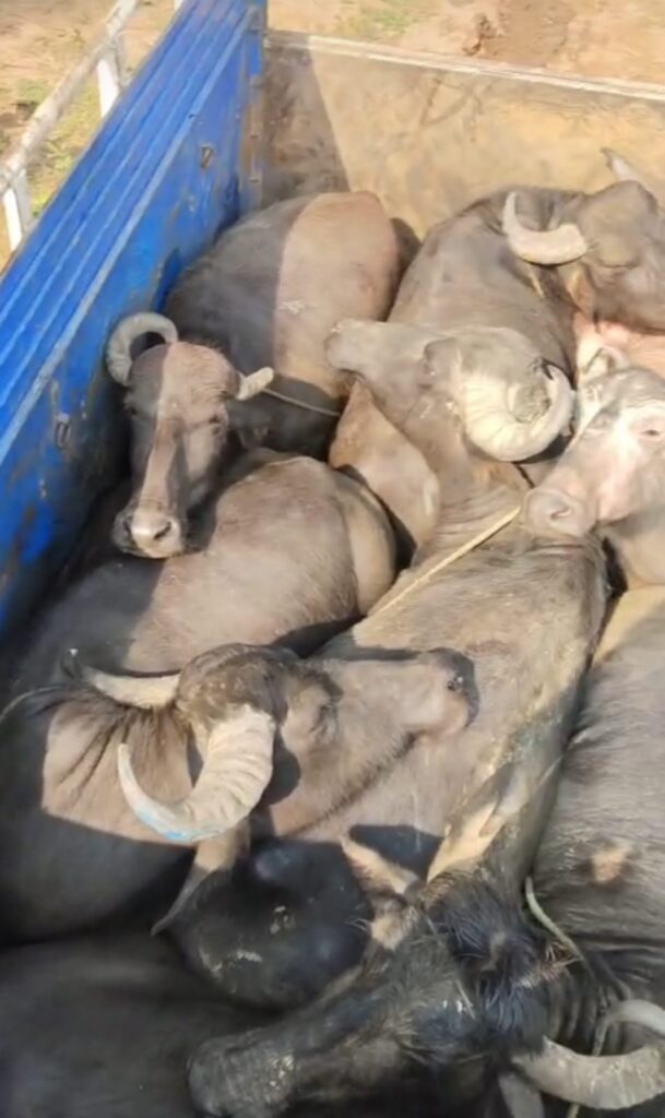 कोरिया जिले में गौ तस्करो के हौसले इन दोनों बुलंद नजर आ रहे हैं बीती रात ऐसे ही गौ तस्करों पर दो थानों की पुलिस की जबरदस्त कार्यवाई और घेराबंदी के बाद सात भैंसे को तो बरामद कर लिया गया । किंतु गौ तस्कर जंगल और अंधेरे का फायदा उठाकर फरार होने में कामयाब हो गए । सोनहत टी आई राजा राम राठिया ने बताया कि पटना क्षेत्र के अंगापूटा ग्राम से एक पिकअप वाहन क्रमांक एमपी 66 जेडजी 2280 में सात भैंसे को रस्सी से बांधकर चरचा थाना क्षेत्र की ओर लाया जा रहा था । जहां पर चरचा थाने को सूचना मिली जिस पर चरचा थाना पुलिस ने तत्काल कार्रवाई करते हुए वाहन का पीछा करते हुए उसे दौड़ाया। जिस पर वाहन चालक ने वाहन को बेहद तेज गति से सोनहत की जंगल की ओर घुसा दिया । चरचा थाना ने सोनहत पुलिस को तत्काल फोन किया जिस पर दोनों तरफ से वाहन की घेराबंदी की गई । इस दौरान सोनहत थाना अंतर्गत ग्राम चंदहा के जंगल में सोनहत पुलिस ने पकड़ा। किंतु इस दौरान मौके का फायदा उठाकर वाहन चालक एवं उसकी सहयोगी भागने में फरार हो गया ।