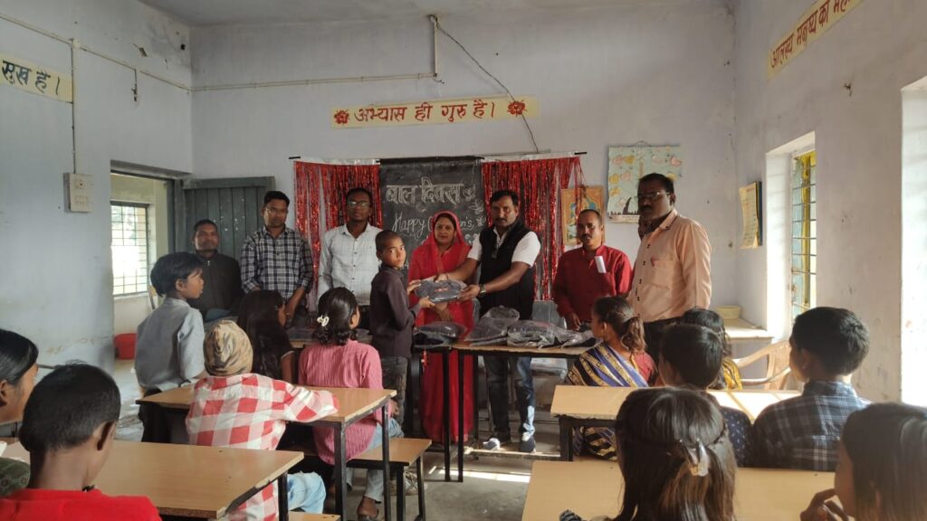 कोरिया जिले में पड रही कडाके की ठंड को ध्यान में रखते हुए बैकुंठपुर जनपद अंर्तगत ग्राम पंचायत टेमरी के मिडिल स्कूल के बच्चो को बाल दिवस के अवसर पर गौसेवा आयोग के जिलाध्यक्ष रेवा यादव के निर्देश पर उप सरपंच शांति सुनील दुबे, स्कूल के प्राचार्य एवं शिक्षकों के द्वारा स्कूली छात्र-छात्राओं को गर्म कपड़े जैकेट वितरण किया गया। इस सबंध् में रेवा यादव ने कहा कि हमारा उद्देश्य है कि कोई भी गरीब छात्र-छात्राये कपड़ो के आभाव में स्कूल से वंचित न हो । शासकीय माध्यमिक शाला टेमरी में बाल दिवस पर बच्चों को विशेष रूप से स्वेटर और मोज़ों का वितरण सहित रसोइया व सफाई कर्मी को भी स्वेटर प्रदान किया गया, जिससे ठंड के मौसम में उन्हें राहत मिल सके। इस पहल को देखकर बच्चों के चेहरों पर खुशी दिखी। विद्यालय परिसर सुबह से ही बच्चों की मुस्कान और उत्साह से गूंज रहा था। उन्होनेे कहा कि हाल के दिनों में बढ़ी हुई ठंड को देखते गर्म कपड़ों का वितरण किया गया है। रेवा यादव ने अभिभावकों से अपील किया कि अपने-अपने बच्चों को नियत समय पर प्रतिदिन स्कूल भेजें। साथ ही ठंड को देखते हुए पूरी सतर्कता बरतने की भी अपील की। कहा कि बच्चों के स्वास्थ्य में अभिभावक लापरवाही न बरतें।