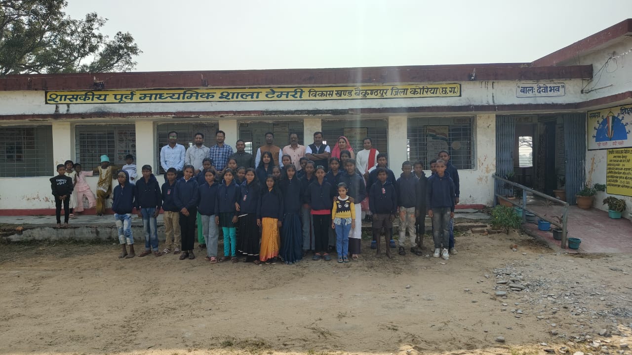 कडाके की ठंड में टेमरी स्कूल में रेवा यादव ने कराए गर्म कपडो का वितरण