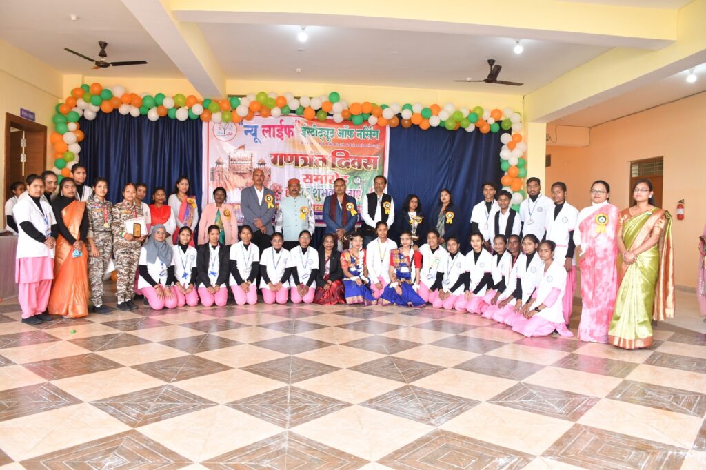 न्यू लाईफ हेल्थ एंड एजुकेशन सोसायटी द्वारा संचालित न्यू लाईफ इंस्टीट्यूट आफ नर्सिंग, बैकुंठपुर में गणतंत्र दिवस के अवसर पर सुबह 8ः00 बजे ध्वजारोहण कार्यक्रम का आयोजन किया गया। गणतंत्र दिवस के अवसर पर कार्यक्रम की शुरूवात मां सरस्वती, भारत माता एंव देश के राष्ट्रपिता महात्मा गांधी के छायाचित्र पर माल्यार्पण एंव दीप प्रज्जवलित से हुआ। संस्था में अध्ययनरत बी.एस.सी. नर्सिंग के विद्यार्थियों एवं स्टॉफ की उपस्थिति में संस्था प्रमुख डॉ प्रिंस जायसवाल एवं वंदना जायसवाल के द्वारा ध्वजारोहण कर समस्त स्टॉफ एवं विद्यार्थियों के द्वारा राष्ट्रगान, झंडा गीत एंव छत्तीसगढ़ राज्यकीय गीत गाया गया। कार्यक्रम में उत्तम कश्यप ब्यूरो चीफ नवभारत, अशोक सिंह ब्यूरो चीफ नई दुनिया, अजय ठाकुर पत्रकार हरिभूमि, नूरजहॉ ब्यूरो चीफ रिहंद टाइम्स अतिथिगण के रूप में सम्मिलित हुयेे। सम्पूर्ण कार्यक्रम में नर्सिंग विद्यार्थियों के द्वारा स्वागत नृत्य छठवां सेमेस्टर, देशभक्ति गीत प्रथम सेमेस्टर, देशभक्ति नृत्य प्रथम सेमेस्टर तथा हरीयाणवी नृत्य, छत्तीसगढ़ी करमा नृत्य सातवां सेमेस्टर के द्वारा प्रस्तुत किया गया। साथ ही तृतीय व चतुर्थ सेमेस्टर के छात्र-छात्राओं ने आपरेशन सिंदूर पर प्रभावशील नटकीय प्रस्तुती दी। कार्यक्रम के मध्य संस्था प्रमुख डॉ. प्रिंस जायवाल, प्राचार्या डॉ. अंजना सैम्यूल एवं अतिथियों द्वारा उद्बोधन में गणतंत्र दिवस की महत्ता के बारे में बताया तथा अच्छे नागरिक के उत्तरदायित्वओं को निभाने की प्रेरणा दी। पुरूस्कार वितरण कार्यक्रम अंतर्गत बी.एस.सी. नर्सिंग द्वितीय बैच छात्रा आरती पैकरा द्वारा छ.ग. व्यापम स्टॉफ नर्स भर्ती परीक्षा 2025 में सम्पूर्ण छत्तीसगढ़ में चतुर्थ स्थान एवं अनुसूचित जनजाति वर्ग में प्रथम स्थान प्राप्त करने पर छात्रा की उल्लेखनीय उपलब्धी को संस्था द्वारा सम्मानीत किया गया साथ ही दो दिवसीय एनवल फीएस्टा 2025 के विजेताओं की घोषणा व पुरूस्कार वितरण सम्मानीय अतिथियों द्वारा दिया गया जिसमें क्विज, लेमन स्पून रेस, एकल, गु्रप गीत और नृत्य शामिल रहा।