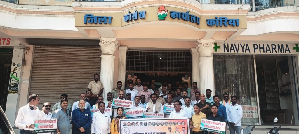 भाजपा कार्यकर्ताओं द्वारा अफीम खेती उजागर होने के विरोध में कांग्रेस का भाजपा कार्यालय घेराव