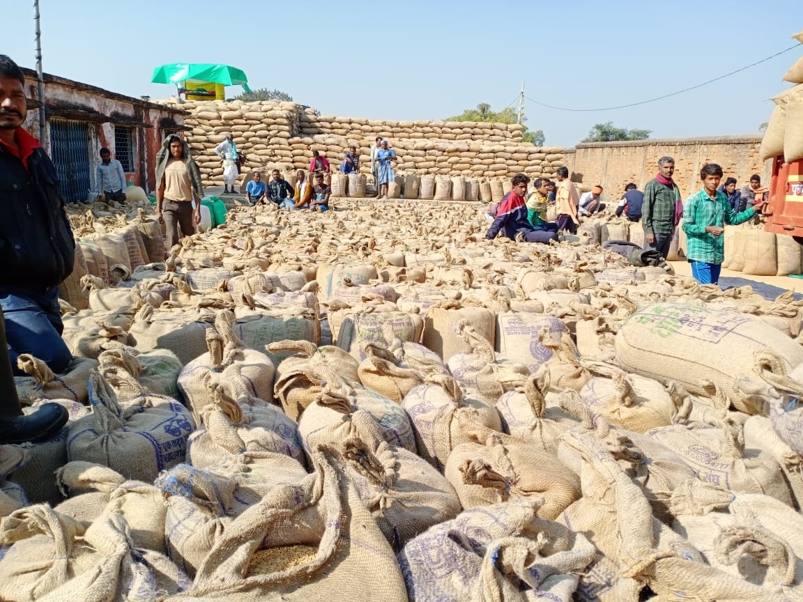 धान खरीद केंद्रों से उठाव नहीं बारदाना की भी कमी वरदान उपलब्ध नहीं होने पर धान खरीदी प्रभावित