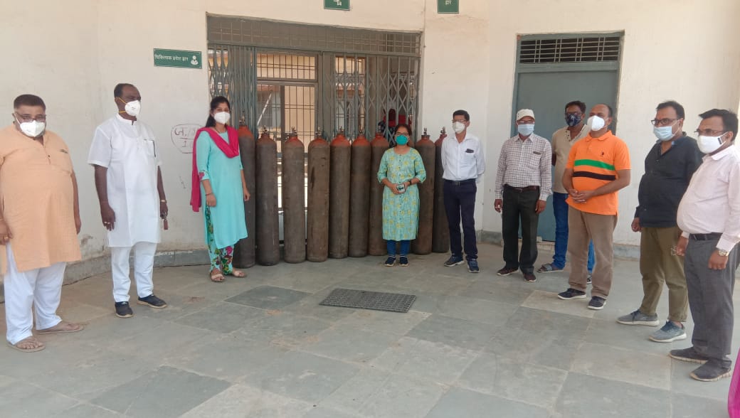 आइसोलेशन सेंटर को मिला 10 जंब्बो ऑक्सीजन सिलेंडर शीघ्र होगी दो बेड आई सी यू का शुभारंभ