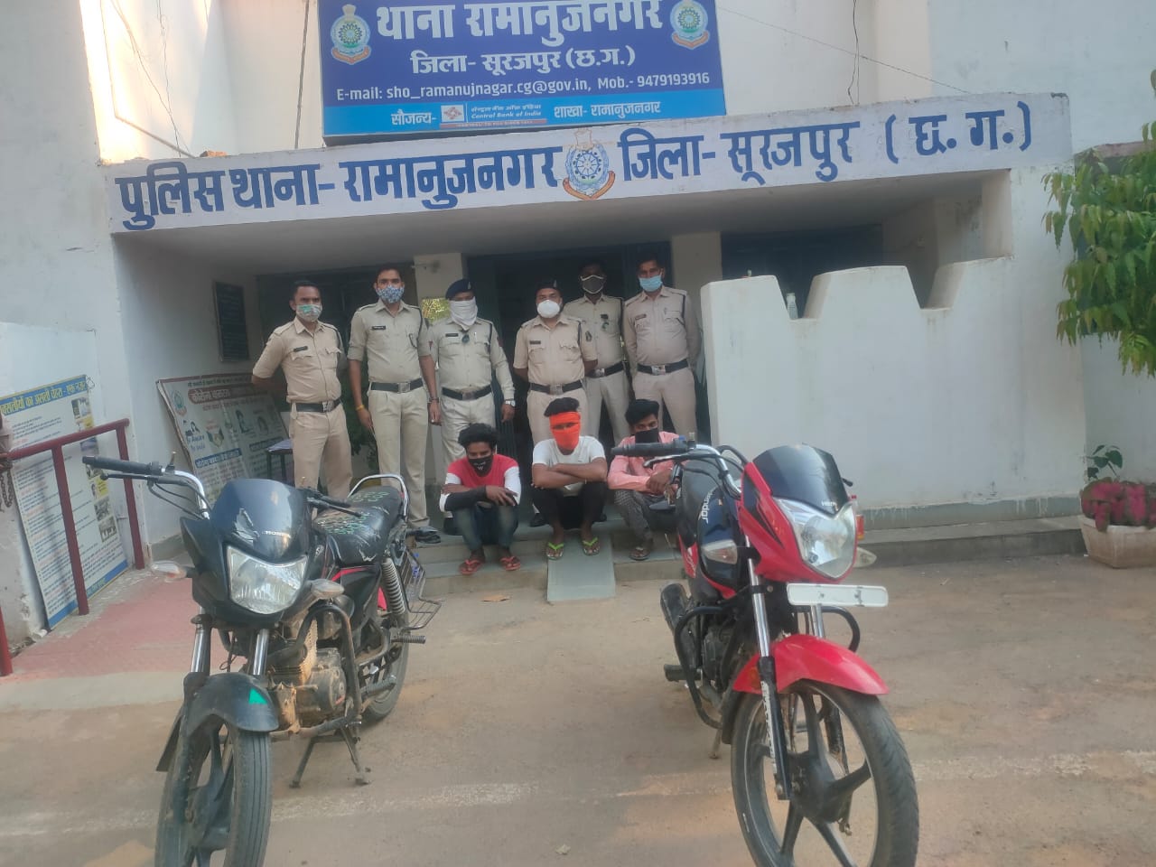2 मोटर सायकल सहित 3 चोरी को सूरजपुर पुलिस ने किया गिरफ्तार