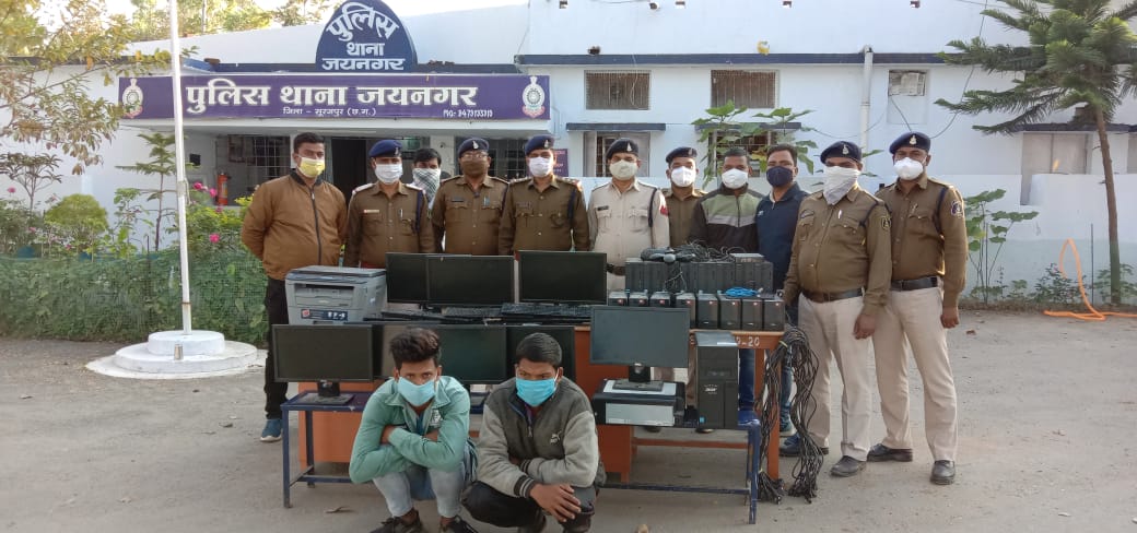 सूरजपुर पुलिस ने 2 आरोपियों से 3 लाख 61 हजार के 8 सेट कम्प्यूटर, 8 यूपीएस, 2 प्रिन्टर व 1 बड़ा सीपीयू जप्त
