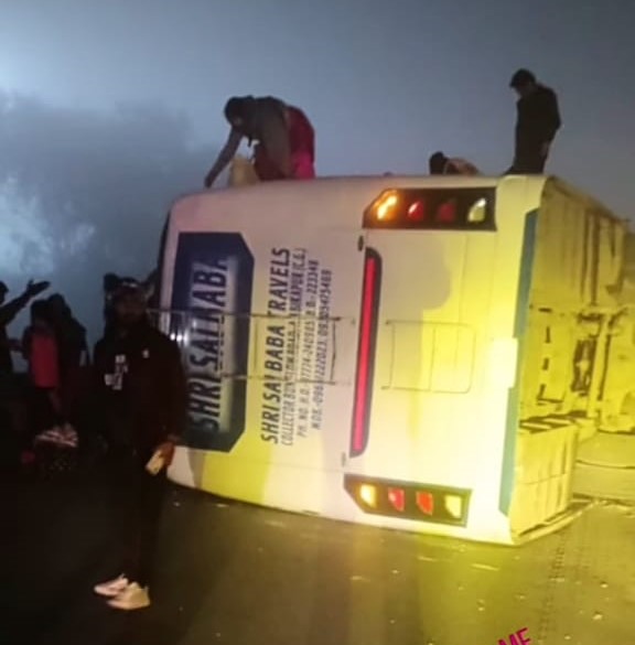 राबर्ट्सगंज में अनियंत्रित हो साई बस पलटी…..आपात खिडकी से निकल लोगो ने बचाई जान…..मौके पर मची अफरा-तफरी…..कुछ दिन पूर्व बनारस के अहरौरा में भी ने बस हुआ था हादसे का शिकार….चिरमिरी से बनारस जा रही थी बस