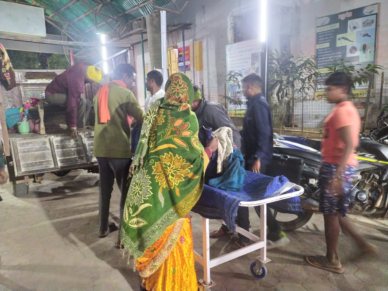 पिकअप पर खाट लगा ईलाज के लिए वृद्धा को परिजनो लाया जिला अस्पताल